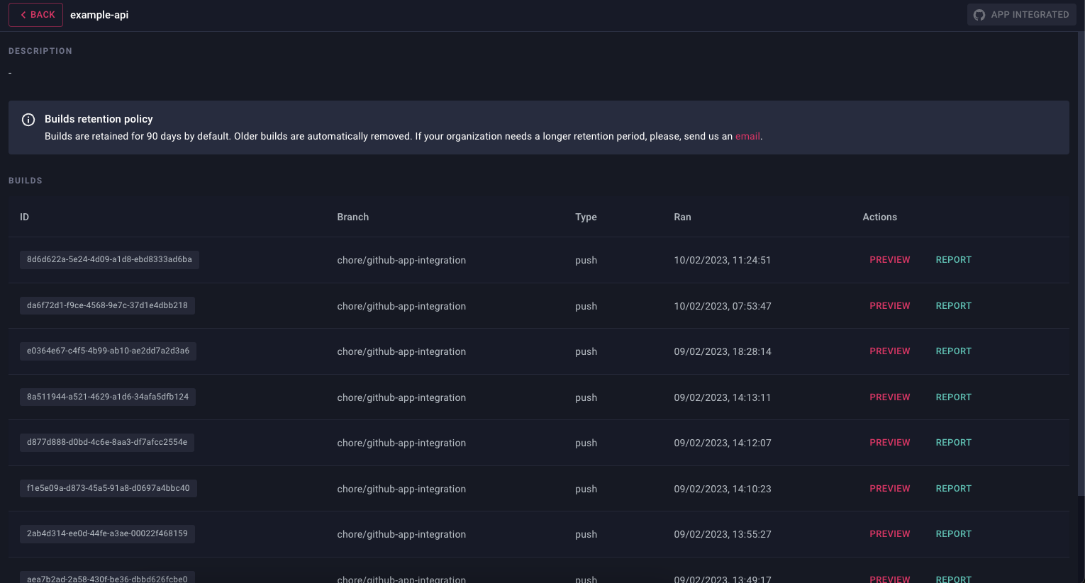 With this integration, you'll be able to see the status of the preview/report generation process right in your pull request: