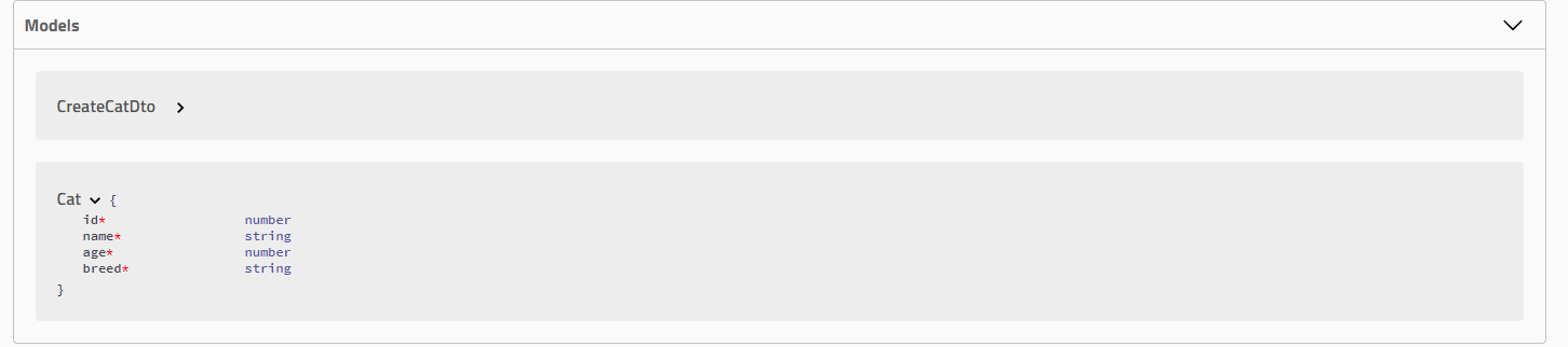 We skip decorating results as we will be providing a raw definition for it later. Now, let's define another DTO and name it, for example, CatDto, as follows: